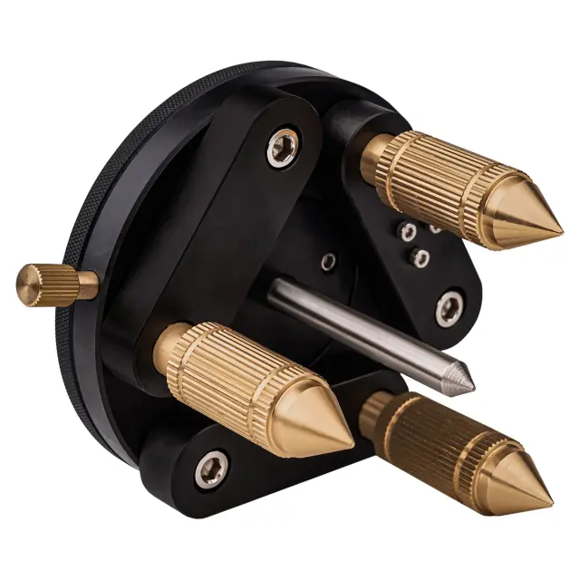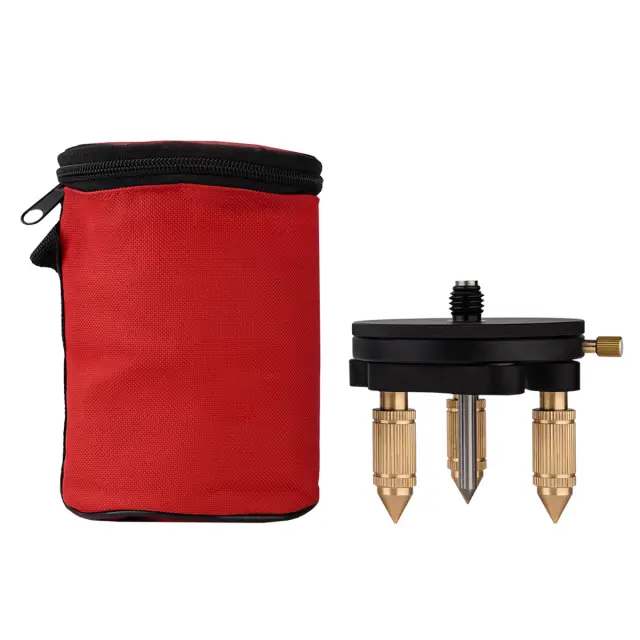 Устройство снабжено механическим центриром в виде стального износостойкого заостренного стержня, который обеспечивает простую установку оборудования над выбранной точкой. Темное небликующее покрытие корпуса адаптера позволяет комфортно работать с оптическими и лазерными приборами , без риска случайной засветки и ошибочного срабатывания. Сетчатое рифление на боковой поверхности упрощает поворот вращающейся части в нужном направлении. Выдвижные элементы подъемного механизма изготовлены из латуни и не подвержены ржавлению. Для удобства хранения и транспортирования изделие комплектуется сумкой-чехлом из текстильного материала.