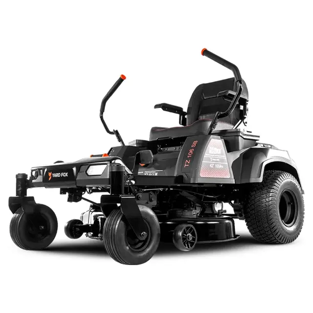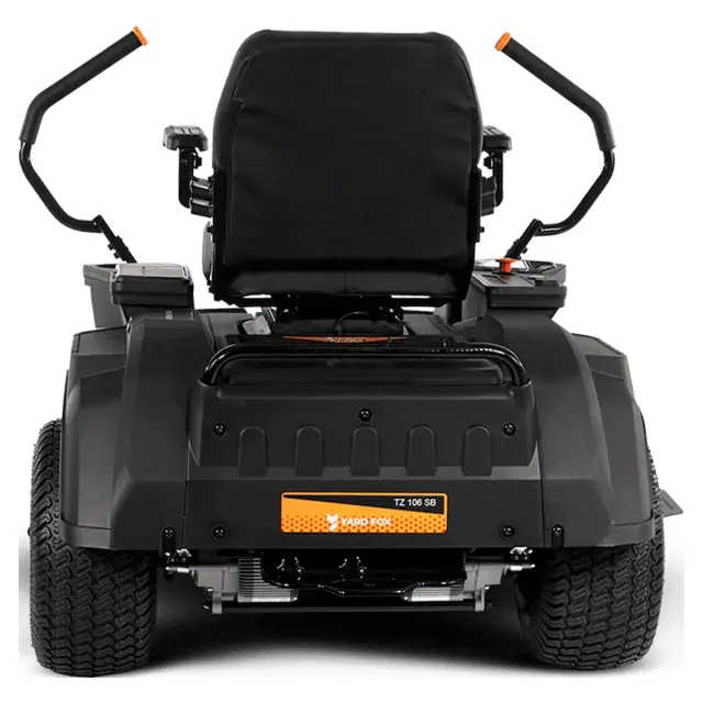 YARD FOX TZ 106 SB создан для максимального комфорта оператора. Штампованная стальная дека обеспечивает прочность и долговечность. Эргономичное сиденье с амортизацией снижает вибрацию и усталость во время работы. Интуитивно понятное кнопочное управление с 4 скоростями вперед и 1 назад позволяет легко контролировать скорость и направление движения. 5-дюймовый ЖК-дисплей отображает всю необходимую информацию о состоянии райдера, уровне заряда батареи и других параметрах. Дополнительные удобства включают в себя светодиодные фары для работы в сумерках, подстаканник, USB-порт для зарядки мобильных устройств и специальное отделение для их хранения. Высокий уровень влагозащиты IPX4 защитит технику от неожиданного дождя.