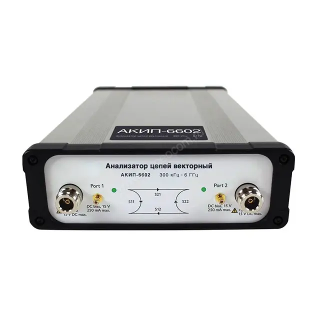 Анализатор цепей АКИП-6602 – измерительное устройство для разработки, настройки и отладки радиооборудования, которое работает в паре с персональным компьютером. Подключение производится через порт USB, настройка, управление режимами работы и анализ измеряемых параметров доступны через программное обеспечение, которое устанавливается на ПК.