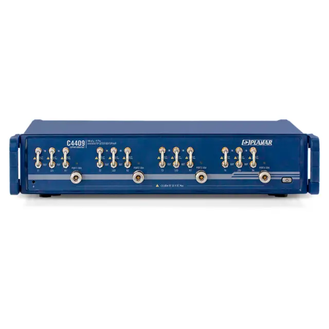 Анализатор цепей векторный Planar C4409 работает в полосе частот от 0,1 МГц до 9 ГГц и оснащается четырьмя измерительными портами. Это гибкий высокопроизводительный инструмент для точных измерений метрологического уровня в СВЧ диапазоне с воспроизводимыми результатами.
