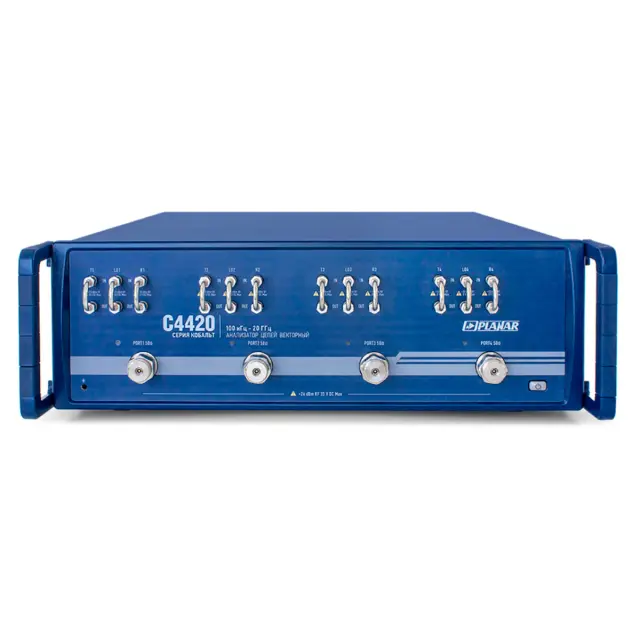 Анализатор цепей векторный Planar C4420 – топовая модель высокопроизводительной линейки КОБАЛЬТ, которая снабжена четырьмя каналами с рабочей полосой частот от 100 кГц до 20 ГГц и работает под управлением внешнего компьютера. Обеспечивая наивысшую скорость измерений и обладая лучшими системными характеристиками, с поддержкой повышения функциональности с помощью опций, прибор может использоваться для решения сложных измерительных задач. Особенностью данного семейства является возможность подключения внешних преобразователей, что позволяет с помощью опциональных модулей расширения серий TFE и FEV увеличивать верхний предел полосы пропускания для измерений в микроволновом диапазоне.