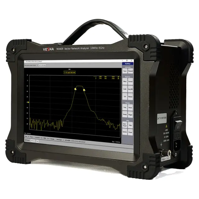 Анализатор цепей векторный VESNA NVA09 – экономичный лабораторный прибор в переносном исполнении, обеспечивающий измерение S-параметров целевых объектов в полосе частот от 10 МГц до 9 ГГц. Оснащенное 2 каналами, изделие может применяться для многопортовых параллельных испытаний РЧ оборудования и систем, поддерживая функцию каскадирования при задействовании аналогичных устройств, с обеспечением их общей синхронизации. Модель выполнена в виде настольного моноблока и подходит для использования в ходе лабораторных, производственных, полевых испытаний, а также в качестве основы для автоматизированных рабочих мест и тестовых установок.