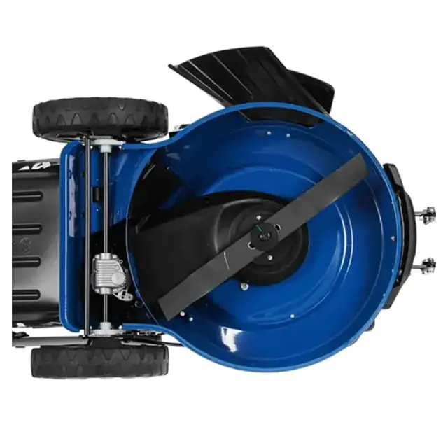 Режущий механизм выполнен из первоклассной стали, благодаря чему легко справляется с тяжелой свежей травой и густыми зарослями. Небольшой изгиб ножа при работе создает мощный вихревой поток, который приподнимает траву для более ровного покоса и уносит срезанную растительность.