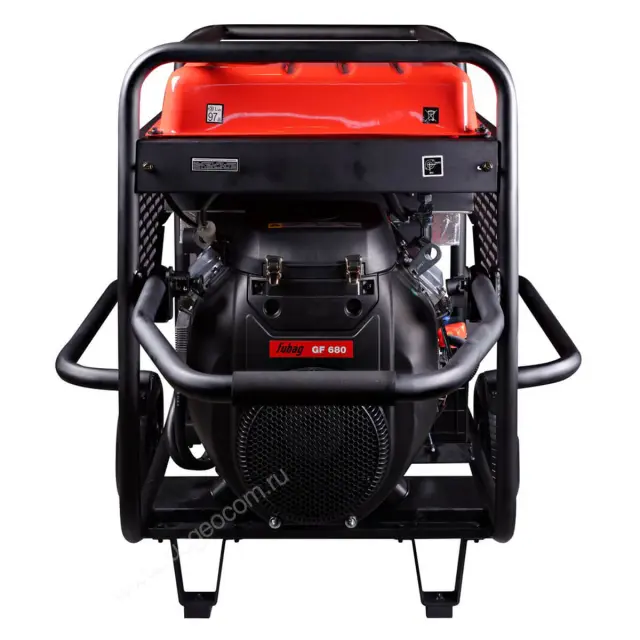 В основе электрогенератора лежит двухцилиндровый двигатель профессионального класса, который отличается долговечностью. Прочная стальная рама выполнена из труб диаметром 32 мм и дополнительно усилена для защиты всех элементов бензогенератора.