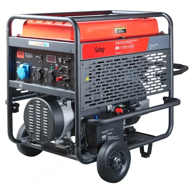 Бензиновый генератор FUBAG BS 17000 A ES - это топовая электростанция в линейке бренда для работы с однофазными потребителями. Сочетание мощного V-образного двигателя и надежного альтернатора с медными обмотками может выдавать до 15 кВт электроэнергии, при этом топливный бак увеличенного объема обеспечивает бесперебойную работу установки в течение 8 часов при подключении нагрузки до ¾ от номинальной.