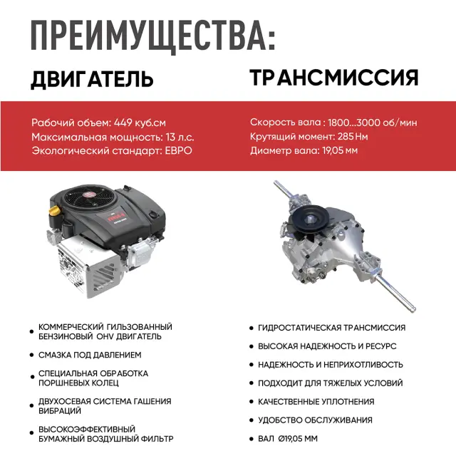 | Моторное масло | API класс SJ, SL, SM, вязкости SAE 10w30, для 4х-тактных двигателей газонокосилок с воздушным охлаждением, полусинтетическое или синтетическое |
