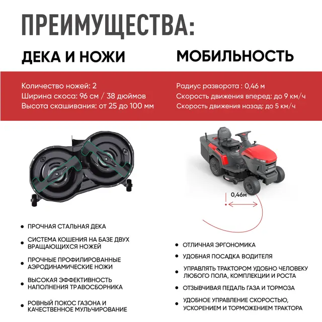 | Функции кошения травы | Сбор в травосборник, Мульчирование |