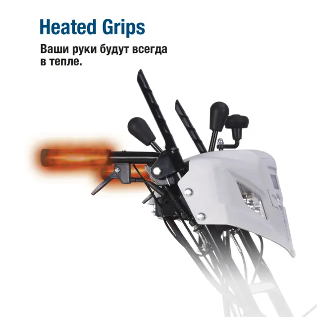 Система разобщения колес обеспечивает легкость маневрирования, позволяя Hyundai HS 6170E легко поворачиваться и двигаться по сложным маршрутам. Возможность регулировки направления и высота отбрасывания снега помогает эффективно очищать территорию, не создавая дополнительных проблем. В холодную погоду подогрев рукояток обеспечивает комфорт во время работы, позволяя не беспокоиться о замерзании рук.