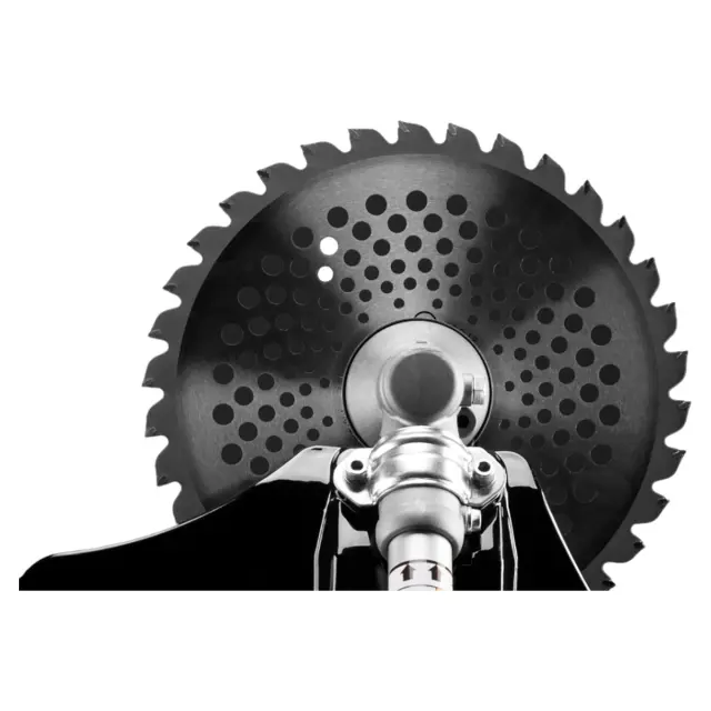 Комбинированный защитный кожух, входящий в стандартную комплектацию, является еще одним преимуществом этой модели. Он легко снимается и подходит как для работы с триммерной насадкой, так и со стальным диском. Это позволяет оператору выбирать насадку в зависимости от типа работы, что делает бензокосу универсальным и гибким.