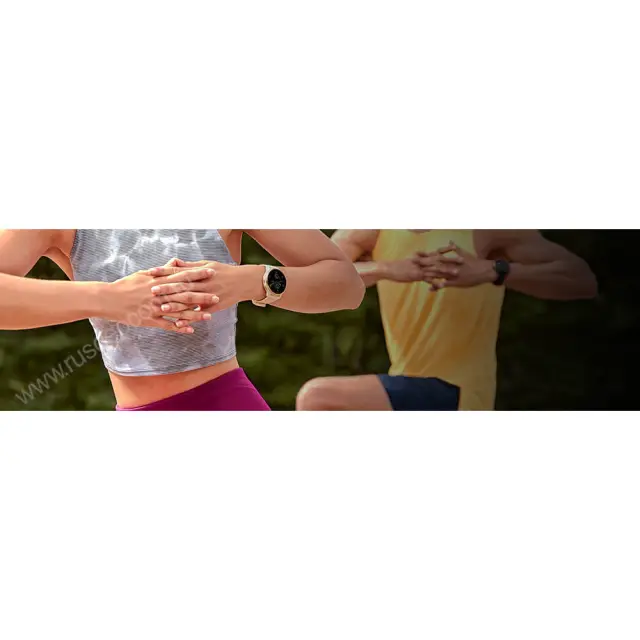Функция Health SnapshotTM - запишите 2-минутную сессию для получения основных статистических данных, включая частоту пульса2, вариабельность частоты пульса, пульсоксиметрию3, дыхание и стресс. Затем создайте отчет с этими данными для возможности передачи информации через приложение Garmin ConnectTM на совместимом смартфоне. Монитор энергии Body BatteryTM - просматривайте уровни энергии вашего организма в течение дня для определения лучшего времени для активности и отдыха. Пульсоксиметр - с помощью пульсоксиметра3 можно узнавать уровень насыщения крови кислородом в любой момент времени в течение дня или во время сна. Таким образом, вы будете знать, насколько хорошо организм усваивает кислород. Слежение за стрессом - узнайте, каким был ваш день: спокойным, сбалансированным или полным стресса. Часы даже предложат вам выполнить короткое расслабляющее дыхательное упражнение, если ваш уровень стресса слишком высок. Отслеживание женского здоровья - используйте приложение Garmin Connect для отслеживания менструального цикла или беременности. Записывайте симптомы, получайте рекомендации по упражнениям и питанию и т.д. Приложение "Отслеживание женского здоровья" позволяет вам просматривать и записывать информацию непосредственно с помощью часов. Отслеживание водного баланса - записывайте количество жидкости, выпитой в течение дня. Вы можете также задать автоматическую цель по водному балансу, которая будет корректироваться в зависимости от количества пота, выделяемого во время занятий. Слежение за дыханием - узнайте, как вы дышите в течение дня, во время сна, при выполнении дыхательных упражнений и занятий йогой или во время сессии для получения кратких данных здоровья “Health Snapshot”. Баллы сна и расширенное наблюдение за сном - получайте баллы, отражающие качество вашего сна, и рекомендации по улучшению сна. Устройство позволяет отслеживать различные фазы сна, а также частоту пульса, уровень стресса, пульсоксиметрию3 и дыхание. Пульсометр на запястье - часы непрерывно измеряют частоту пульса2 и выдают предупреждения при получении слишком высоких или низких показаний в состоянии покоя. Кроме того, пульсометр позволяет определить степень интенсивности ваших занятий (даже во время плавания). Дыхательные упражнения - вы можете выполнить дыхательное упражнение, чтобы расслабиться или сосредоточиться. При этом часы отслеживают уровень стресса и частоту дыхания, позволяя вам узнать больше о том, как вы дышите. Спортивный возраст - эта функция использует реальный возраст, количество минут еженедельных интенсивных занятий, частоту пульса в состоянии покоя и индекс массы тела (BMI) или процент телесного жира4 для оценки того, является ли ваше тело моложе или старше вашего возраста. Можно получать советы по снижению спортивного возраста. Анимированные экранные тренировки - часы поставляются с предзагруженными наглядными анимированными тренировками для йоги, пилатеса, кардио, силовых тренировок и высокоинтенсивных интервальных тренировок (HIIT). Дополнительные тренировки можно загрузить из приложения Garmin Connect. Встроенные спортивные приложения - тслеживайте все ваши занятия с помощью более 25 спортивных приложений с использованием GPS и для закрытых помещений, включая ходьбу, бег, велоспорт, плавание в бассейне, гольф и прочее. Усовершенствованные силовые трени