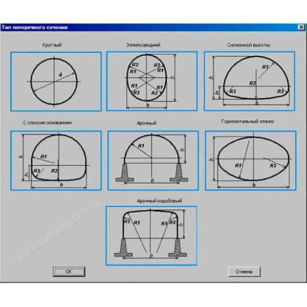 Расчет металлических гофрированных труб выполняется по трем методикам, условные названия расчетов: ГОФР_I, ГОФР_ II, ГОФР_III. Каждой методике соответствуют определенные типы поперечных сечений.