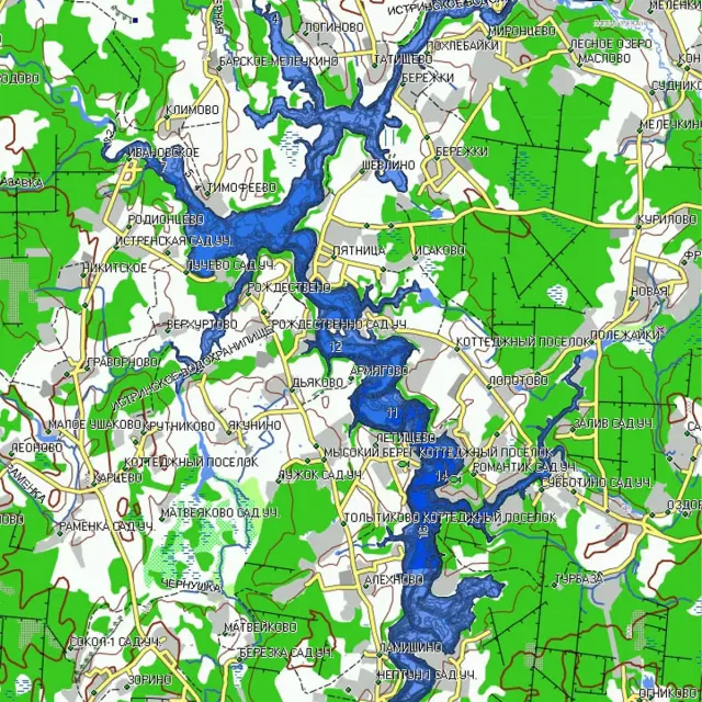 карта совмещающая карты дорог, глубин водоемов и топографические карты.