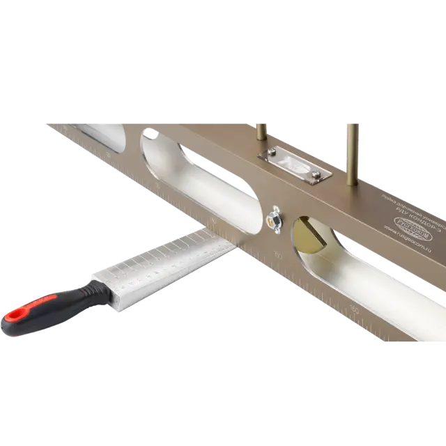 Рейка РДУ "Кондор" от компании производителя Русгеоком — трёхсекционный инструмент для оценки неровности дорожного полотна, измерения крутизны откосов, насыпей и выполнения аналогичных задач в дорожном строительстве. Оборудована клиновым промерником для замеров просветов. Внесена в Госреестр, что позволяет применять её в госпроверках и оформлении официальной документации.