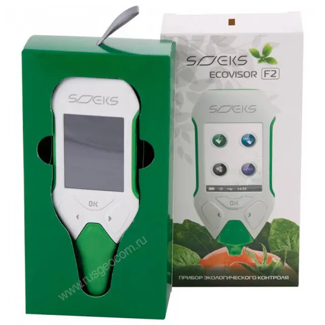 Эковизор СОЭКС F2 используется для экспресс-проверок овощей, фруктов, мяса на содержание нитратов и определения качества воды методом ионометрии. Компактный прибор, который весит всего 95 г, удобно брать с собой в магазин или на рынок, он легко помещается в карман сумки или одежды. Модель рассчитана как на бытовое, так и на профессиональное использование при закупках больших партий продуктов питания или оценки эффективности фильтров для воды.