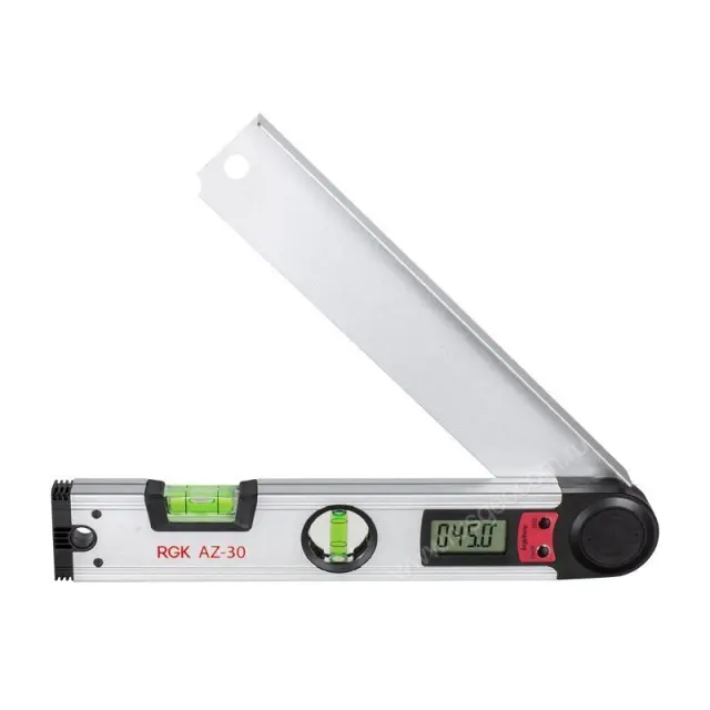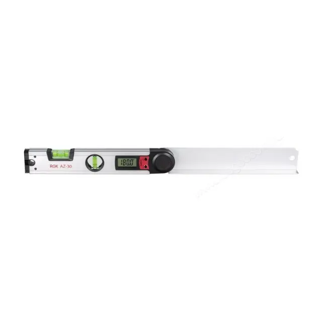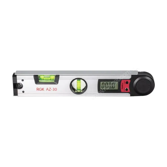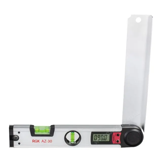 Электронный угломер RGK AZ-30 - способен измерять значения углов до 225° с выведением результатов на цифровой дисплей. С помощью угломера вы можете измерить как абсолютные угловые значения, так и относительные.