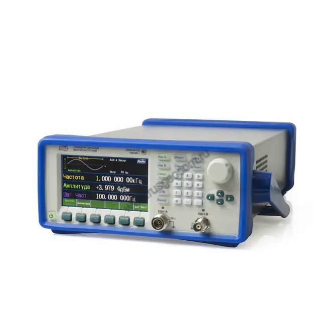 | Особенности | Два полностью независимых источника колебаний. Число стандартных и функциональных форм сигналов -50. Редактирование сигналов произвольной формы (5 ячеек памяти). Частота дискретизации до 120 МГц. Режим SUM, сложение 2-х выходных сигналов. Встроенный частотомер до 350 МГц. Опция - усилитель мощности до 2 Вт, 50 Ом. |