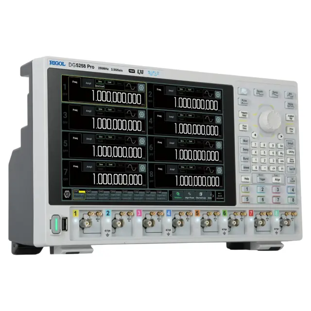 Генератор сигналов произвольной формы RIGOL DG5258 Pro – лабораторный прибор топового уровня, с частотным диапазоном 250 МГц, максимальной частотой семплирования 2,5 Гвыб/с и 16-битным вертикальным разрешением. Построенный на основе технологии SiFi II, он способен реализовывать сложные сценарии тестирования в ходе разработки и отладки электронной и цифровой продукции. Данная модель снабжена 8 каналами, каждый из которых поддерживает индивидуальную синхронизацию и разные виды модуляции, благодаря чему обеспечивается экономическая эффективность изделия, позволяя обходиться при выполнении работ без другого лабораторного оборудования.
