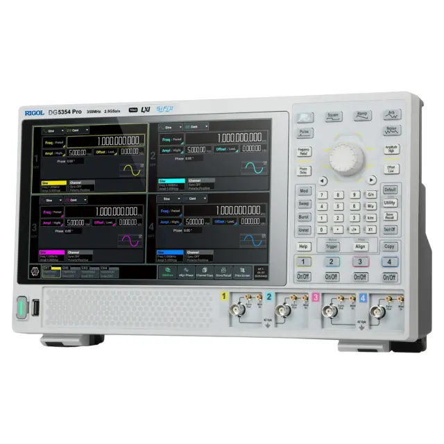 Генератор сигналов произвольной формы RIGOL DG5354 Pro является многофункциональным 4-канальным лабораторным устройством прецизионного класса с полосой пропускания до 350 МГц. Поддерживая широкий набор режимов, с опциональным увеличением их перечня, устройство способно заменить собой разнотипное испытательное оборудование, в том числе источники цифровых, тактовых, медицинских и прочих сигналов, импульсов, последовательностей, гармоник, шума, стандартных периодических и сложных функций с модуляцией и свипированием, и т.д.