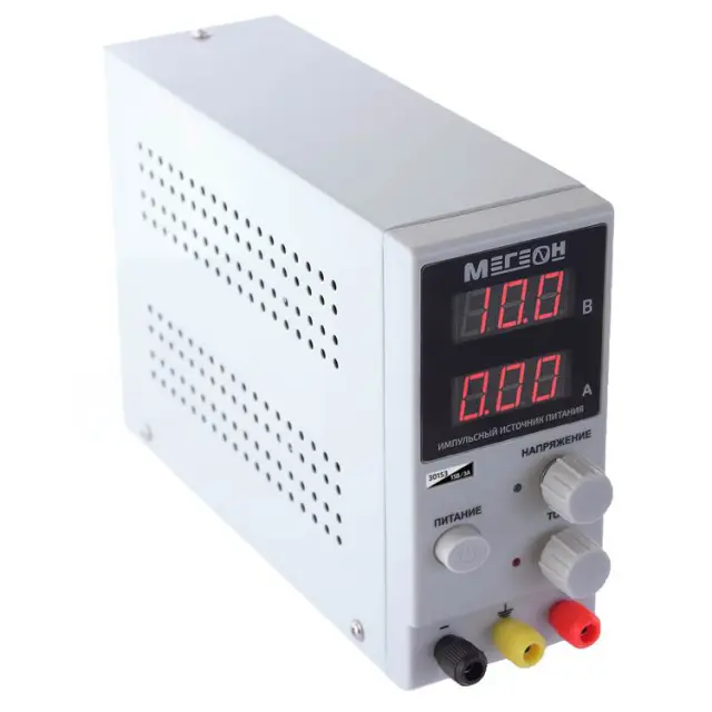 Импульсный источник питания МЕГЕОН 30153 представляет собой эффективный и простой в использовании прибор с регулируемым выходным напряжением в пределах до 15 А и силой тока до 3 А, который подходит для решения бытовых и профессиональных задач. За счет применения безтрансформаторной схемы преобразования изделие обладает небольшим весом и может без усилий перевозиться и переноситься при необходимости выполнения работ на выезде.