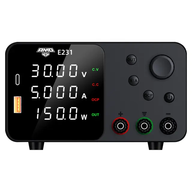 Источник питания AMO E231 — это компактное и высокоточное устройство с регулируемым выходом постоянного тока, разработанное для радиолюбителей, инженеров, студентов и сервисных центров. Диапазон напряжения от 0,01 до 30 В и тока от 0,001 до 5 А обеспечивает стабильное питание для широкого спектра электронных устройств — от микроконтроллеров и модулей IoT до усилителей и тестовых плат. Встроенные функции защиты, цифровая индикация и интерфейсы быстрой зарядки делают эту модель востребованной в учебных, исследовательских и производственных задачах.