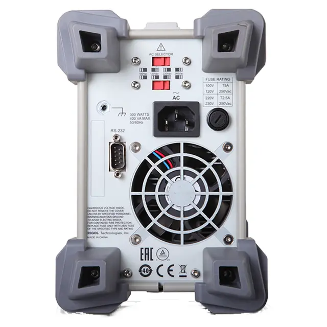 Прибор снабжен цифровой панелью, клавишами навигации, вызова функций и настроек, а также поворотным энкодером, что обеспечивает простоту и удобство управления. За счет одновременного отображения на 3,5-дюймовом графическом дисплее в процессе работы выходных параметров и заданных пороговых показателей защиты по уровню напряжения и силы тока, при активации функций OVP/OCP, устройство обладает высокой наглядностью. Встроенная память обеспечивает возможность записи и быстрого вызова до 10 конфигураций настроек и 2 списков с запрограммированным изменением выходных характеристик по времени при активации опции таймера.