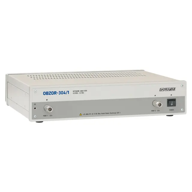 Измеритель ИККПО Planar Обзор-304/1, снабженный 2 портами с N-коннекторами для подключения к коаксиальным трактам и обеспечивающий отслеживание показателей S-параметров в полосе частот от 300 кГц до 3,2 ГГц, может использоваться в ходе разработки, производства и диагностики РЧ устройств и компонентов, обеспечивая контроль их характеристик.