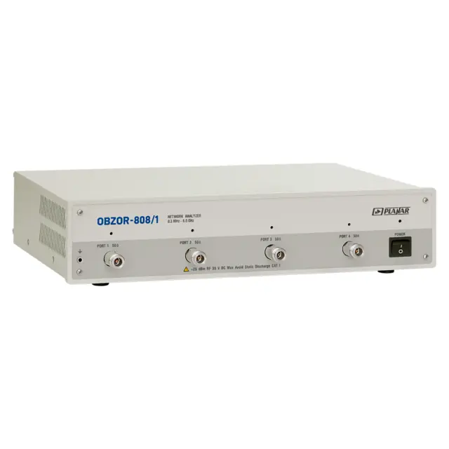 Измеритель ИККПО Planar Обзор-808/1 представляет собой 4-портовый лабораторный прибор с 2 внутренними независимыми источниками тестовых сигналов и 8-канальным приемником, с динамическим диапазоном не менее 145 дБ, который предназначен для контроля S-параметров РЧ и СВЧ оборудования и компонентов в полосе частот до 8 ГГц.