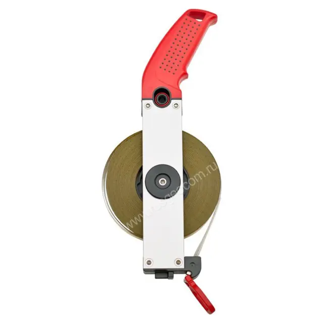 Лента измерительной рулетки BMI ERGOLINE 30 M производится из высокоуглеродистой стали высокой прочности и имеет длину 30 метров. Поверх полотна наносится тонкий слой полиамида, исключающий истирание ленты. Сверху по антикоррозионному покрытию наносится измерительная шкала черного цвета с точность 1 мм.
