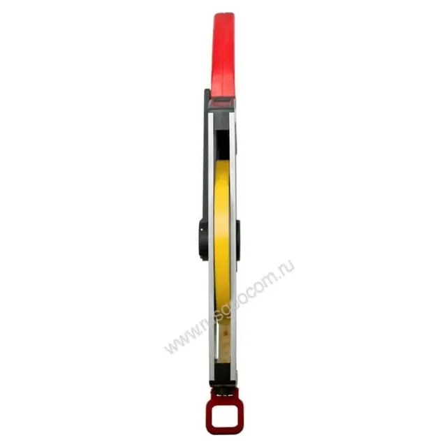Наконечник стальной ленты рулетки BMI ERGOLINE 50 M выполнен в форме крюка и петли. Благодаря этому, ее удобно закреплять на крюке, анкерах и других выступающих элементах конструкций и измерительных приборов.