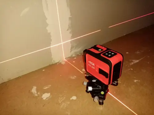 Горизонт проецируется максимально низко к полу. Очень удобное управление, для каждого плоскости есть своя кнопка с индикацией. Может работать даже при одном аккумуляторе! Цена очень приятная. на 15 метрах толщина линий примерно 3-4 мм, при этом лучи видно хорошо и без очков. Есть режим работы с приемником и работы под наклоном, шикарная комплектация, топовый продвинутый кейс с клапаном для выравнивания перепадов давления