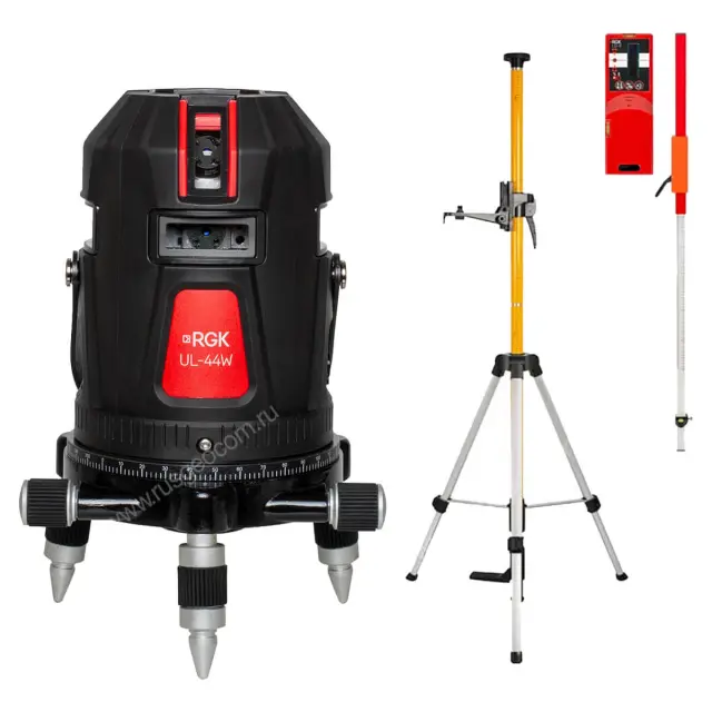 Лазерный нивелир RGK UL-44W оснащается системой самовыравнивания с компенсатором на основе сервоприводов, что обеспечивает максимальную скорость выравнивания по горизонтали в пределах 5°. Лазерный уровень RGK готов к работе сразу же после включения и полностью устойчив к вибрации, что позволяет использовать нивелир поблизости от работающей строительной техники. Лазерный отвес, которым оснащается UL-44W, помогает точнее установить устройство на точке измерения.