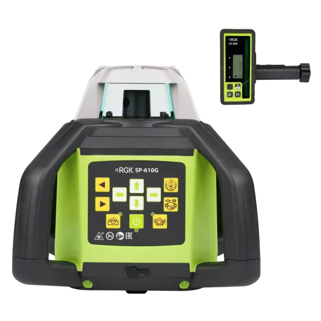 Технические характеристики Комплект: ротационный нивелир RGK SP-610G с калибровкой + миллиметровый приёмник излучения RGK LD-88G