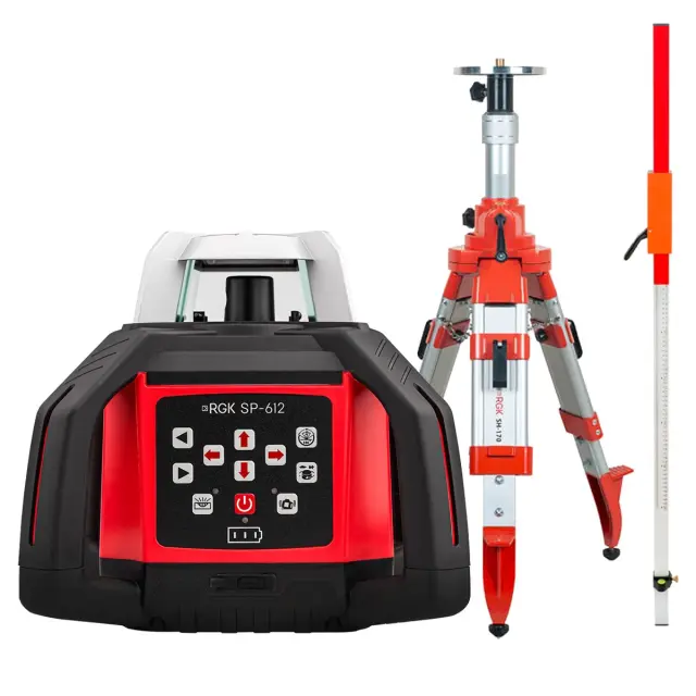 Отзывы о Комплект: ротационный нивелир RGK SP-612 с калибровкой + штатив RGK SH-170, рейка RGK LR-2