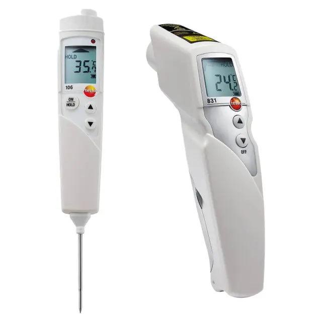 - 1 Комплект testo 831 и testo 106 для ИК-измерений и измерений внутренней температуры