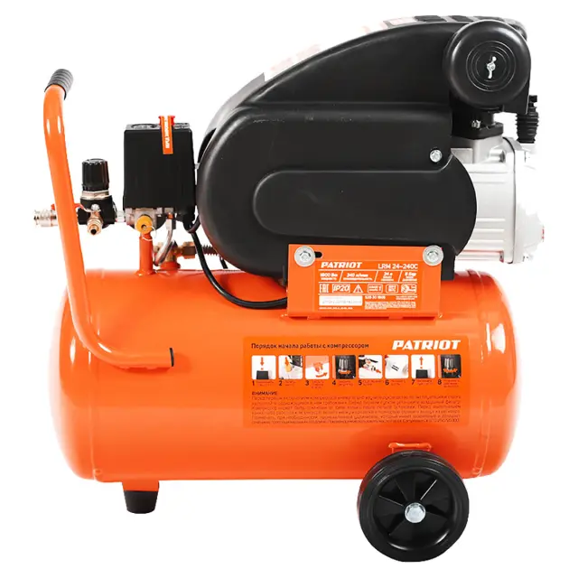 Поршневой масляный компрессор PATRIOT LRM 24-240C - это надежный и производительный инструмент, который станет незаменимым помощником в гараже, мастерской или на даче. Он предназначен для выработки, хранения и подачи сжатого воздуха в пневмопистолеты и другие пневмоинструменты. Он прост в эксплуатации и обслуживании, а благодаря своей высокой мощности и производительности подходит для различных работ с пневмоинструментами.