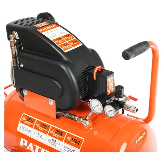 Поршневой масляный компрессор PATRIOT LRM 50-240C - это универсальный агрегат, предназначенный для выполнения широкого спектра работ в бытовых условиях и в небольших мастерских. Он идеально подходит для накачивания шин, продувки деталей, покраски, шлифовки и других задач, требующих сжатого воздуха.