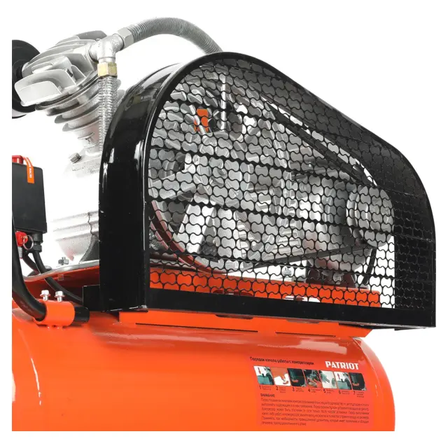Двухцилиндровая поршневая группа с V-образным расположением цилиндров гарантирует обеспечивает равномерную работу и отличается пониженным уровнем вибраций. Электродвигатель мощностью 2,2 кВт обеспечивает стабильную работу компрессора Patriot PTR 50-450A и поддерживает скорость вращения 1020 об/мин.