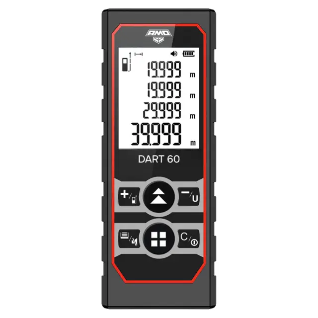 Лазерный дальномер AMO DART 60 — это усовершенствованная версия с расширенным диапазоном измерений до 60 метров. Прибор предназначен для профессионального использования на стройках, при проектировании ландшафтов, в промышленности и при проведении геодезических работ.
