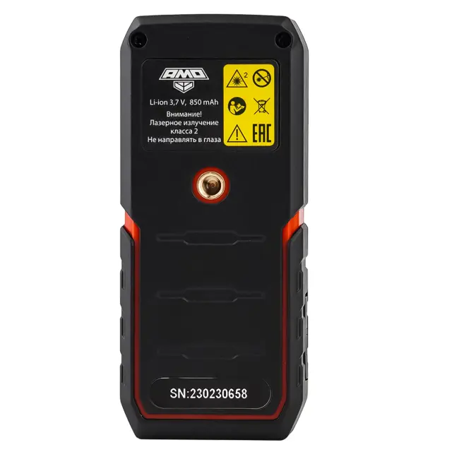 Лазерный дальномер AMO DIST 50 с угломером предназначен для линейных измерений в диапазоне до 50 м с 2-миллиметровой точностью, контроля горизонтальных и вертикальных размеров и расстояний с одновременным отслеживанием угла наклона или возвышения прибора, а также для выполнения разметки в ходе строительно-ремонтных, отделочных и других работ. Улучшенная пыле-влагозащита в соответствии с категорией IP 54, реализованная за счет использования мембранной клавиатуры и наличия заглушки для порта зарядки, дает возможность эксплуатировать прибор как при выполнении работ в помещениях, так и в полевых условиях.