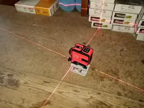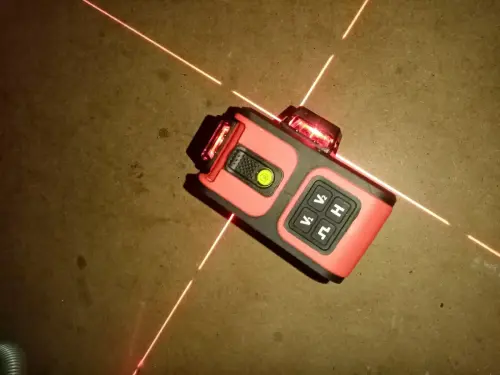 Горизонт проецируется максимально низко к полу. Очень удобное управление, для каждого плоскости есть своя кнопка с индикацией. Может работать даже при одном аккумуляторе! Цена очень приятная. на 15 метрах толщина линий примерно 3-4 мм, при этом лучи видно хорошо и без очков. Есть режим работы с приемником и работы под наклоном, шикарная комплектация, топовый продвинутый кейс с клапаном для выравнивания перепадов давления