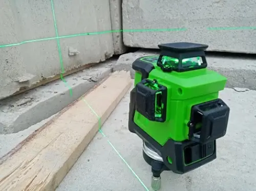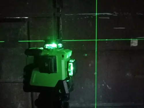 Нивелир работает отлично, на расстоянии 5 м от стены, толщина линии примерно 1мм. Что для помещения отличный вариант. Лазер зеленый и хорошо виден даже на светлых стенах. Уже покупал нивелир этой фирмы, понравился.