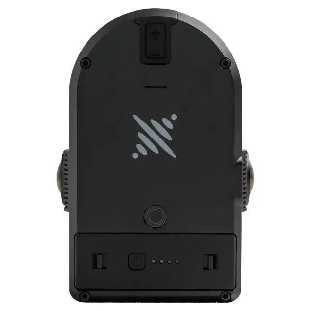 Пространственная камера SLAM-сканера, благодаря компактным размерам и небольшому весу, не превышающему 0,9 кг, позволяет вести съемку территорий и помещений "с руки" без особых усилий, просто перемещаясь по маршруту пешком или с использованием транспортных средств. Изделие снабжено лидаром в передней части, парой горизонтально размещенных фронтальных камер, регистрирующих мельчайшие детали обстановки, и двумя боковыми камерами с объективом "рыбий глаз" с широким обзором, за счет чего обеспечивается полный визуальный охват окружающего пространства. С тыльной стороны изделия размещен слот под съемный аккумулятор с индикаторами и кнопкой включения, и функциональная кнопка, обеспечивающая запуск и остановку съемочного процесса, а также принудительный перевод сканера в режим USB накопителя. Используя комплектный крепеж, на устройстве можно зафиксировать пользовательский смартфон, и управлять изделием и контролировать процесс съемки через бесплатное приложение LCC Scan.