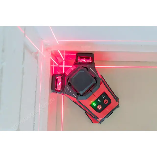 Прибор выстраивает две вертикальных и одну горизонтальную плоскости с углом развертки 360°, что позволяет работать по всему периметру объекта, не меняя положение прибора.