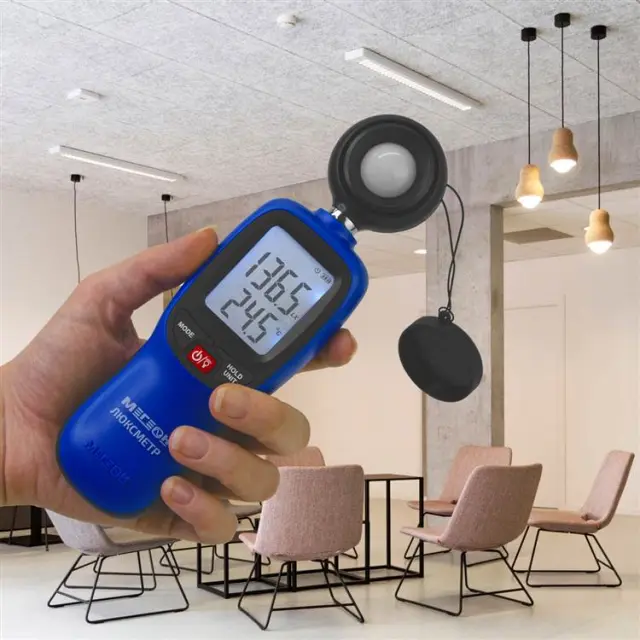 Люксметр МЕГЕОН 21001 с поверкой – компактный прибор моноблочного типа, позволяющий определять показатель интенсивности светового потока и освещенности в помещениях и на открытом воздухе. Достоверность метрологических характеристик изделия подтверждена свидетельством о поверке, благодаря чему измеритель подходит для использования в сферах, подпадающих под Госрегулирование. Его можно применять в ходе аттестации рабочих мест согласно СанПиН 2.2.4.3359, для проверки гигиенических условий в помещениях по СанПиН 2.2.1/2.1.1.1278, оценки инсоляции в ходе приемки зданий и сооружений по СП 52.13330.2011, для контроля соответствия освещения требованиям ГОСТ Р 55706 и т.д.
