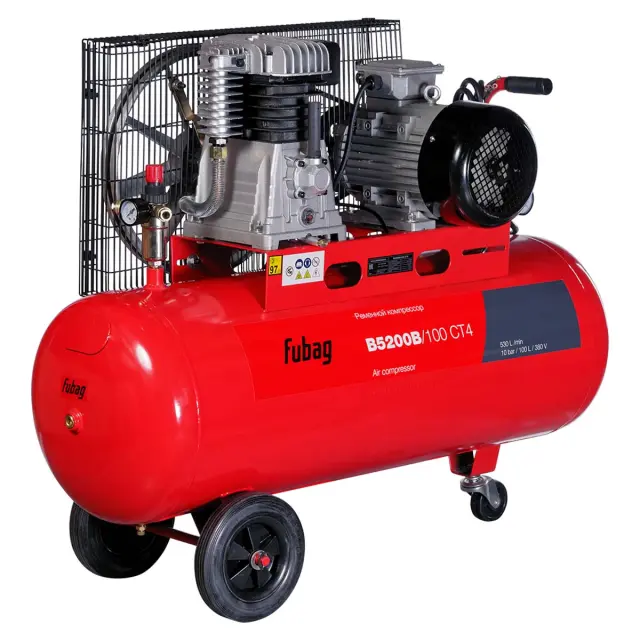 Ременной компрессор FUBAG B5200B/100 CT4 – надежное и удобное в эксплуатации оборудование, которое подходит для работы практически со всеми видами пневмоинструмента. Если у вас есть крупное гаражное хозяйство, автопарк, стройплощадка или небольшое производство, то этот агрегат станет экономичным решением для обеспечения сжатым воздухом.