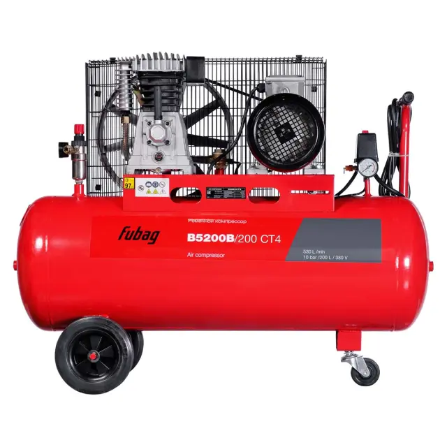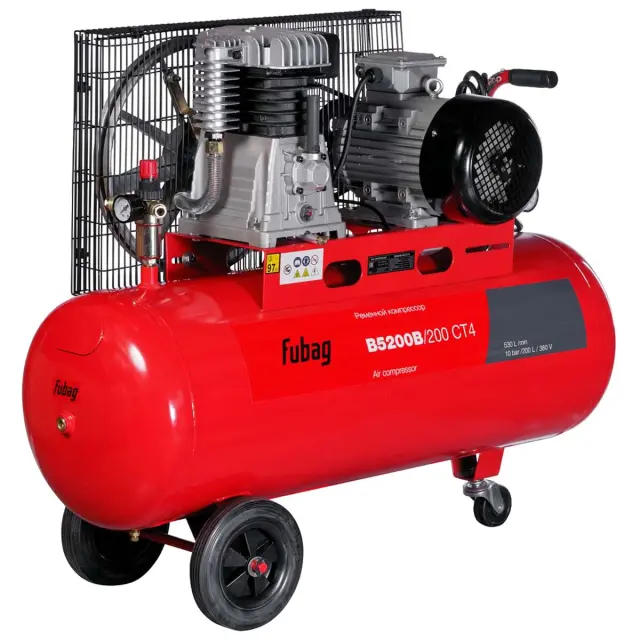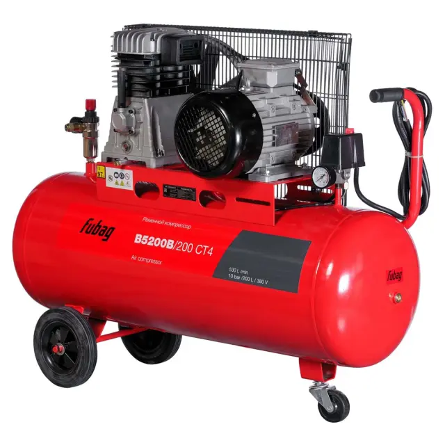 Ременной компрессор FUBAG B5200B/200 CT4 - надежный и эффективный инструмент, предназначенный для подачи сжатого воздуха в пневмоинструменты. Благодаря своим характеристикам и функциональности, он находит применение в различных отраслях, таких как строительство, промышленность и автомастерские.