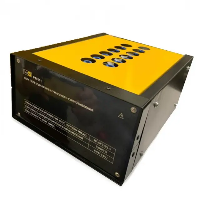 Меры переходные электрического сопротивления ПрофКиП Р40111 предназначены для воспроизведений электрического сопротивления постоянному току. Применяются для передачи значений электрического сопротивления от образцовых мер в измерительных цепях постоянного тока, для использования в качестве многозначных мер сопротивления. Принцип действия мер заключается в воспроизведении необходимых значений сопротивлений с помощью резистивных элементов.