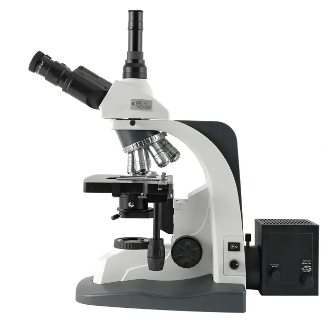 Источник света - мощный 50-ваттный галогеновый осветитель с регулировкой яркости расположен во внешнем фонаре, что обеспечивает холодное освещение препарата.