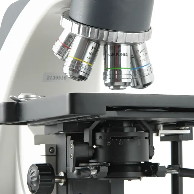 Высокоточная сборка и юстировка микроскопа позволяют исследовать интересующий наблюдателя участок препарата и не терять его из поля зрения при смене объектива.