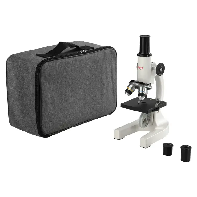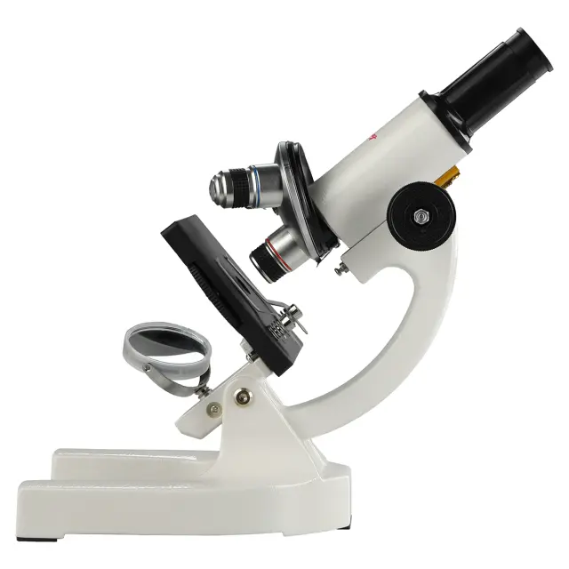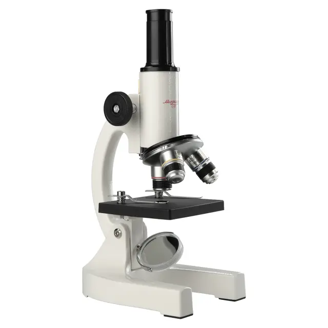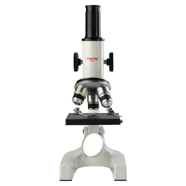 - 1 Штатив и основание микроскопа с окулярным тубусом и револьвером на 3 гнезда